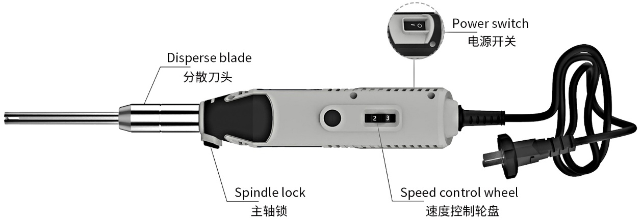 图2.碧云天TissueMaster™ TH35K手持式高速匀浆机(35000rpm) (E6609)结构示意图。